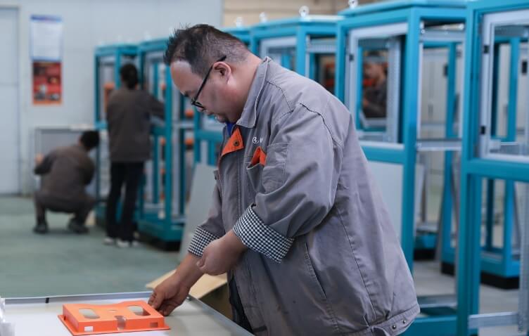 工業(yè)機(jī)柜即按電氣接線要求將開(kāi)關(guān)設(shè)備、測(cè)量?jī)x表、電器和輔助設(shè)備組裝在機(jī)柜中,對(duì)生產(chǎn)過(guò)程實(shí)現(xiàn)控制,且具有保護(hù)存放設(shè)備、屏蔽電磁干擾等功能。